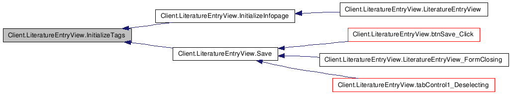 Referenced by Client.LiteratureEntryView.InitializeInfopage(), Client.LiteratureEntryView.InitializeReferences(), Client.LiteratureEntryView.InitializeTags(), Client.LiteratureEntryView.LiteratureEntryView(), Client.LiteratureEntryView.Project_Click(), Client.LiteratureEntryView.Save(), Client.LiteratureEntryView.tabControl1_Selecting(), Client.LiteratureEntryView.tabControl2_Selecting(), Client.LiteratureEntryView.tagContainer1_TagAdded(), and Client.LiteratureEntryView.tagContainer1_TagRemoved().