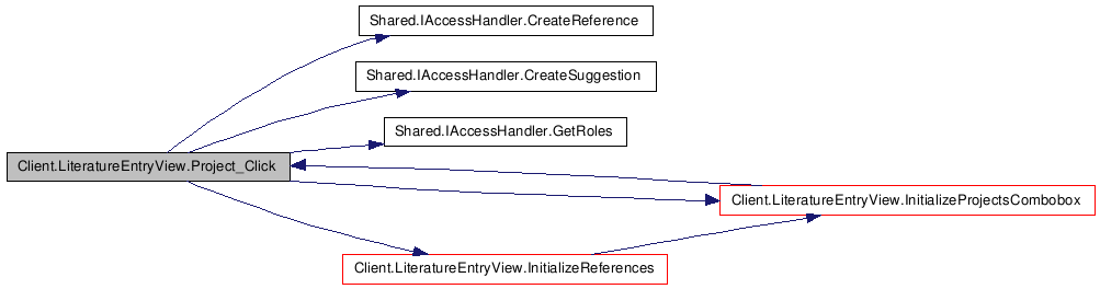References Client.LiteratureEntryView.accessHandler, Shared.IAccessHandler.CreateReference(), Shared.IAccessHandler.CreateSuggestion(), Shared.IAccessHandler.GetRoles(), Shared.LiteratureInfo.id, Shared.ProjectInfo.id, Client.LiteratureEntryView.info, Client.LiteratureEntryView.InitializeProjectsCombobox(), Client.LiteratureEntryView.InitializeReferences(), and Shared.IAccessHandler.WhoAmI.