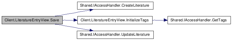 References Client.LiteratureEntryView.accessHandler, Client.LiteratureEntryView.btnSave, Client.LiteratureEntryView.comboBoxType, Shared.IAccessHandler.CreateLiterature(), Shared.LiteratureInfo.creator, Client.LiteratureEntryView.dirty, Shared.LiteratureInfo.id, Client.LiteratureEntryView.info, Client.LiteratureEntryView.InitializeTags(), Client.LiteratureEntryView.LiteratureInfo, Client.LiteratureEntryView.newWindow, Client.LiteratureEntryView.tagContainer1, Client.LiteratureEntryView.textBoxAuthors, Client.LiteratureEntryView.textBoxISBN, Client.LiteratureEntryView.textBoxSource, Client.LiteratureEntryView.textBoxSummary, Client.LiteratureEntryView.textBoxTitle, Client.LiteratureEntryView.textYear, and Shared.IAccessHandler.UpdateLiterature().