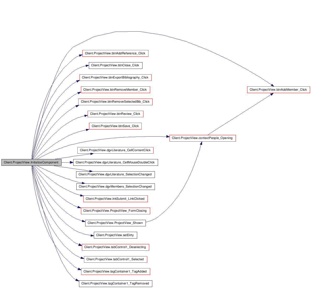 References Client.ProjectView.btnAddMember, Client.ProjectView.btnAddMember_Click(), Client.ProjectView.btnAddReference, Client.ProjectView.btnAddReference_Click(), Client.ProjectView.btnClose, Client.ProjectView.btnClose_Click(), Client.ProjectView.btnExportBibliography, Client.ProjectView.btnExportBibliography_Click(), Client.ProjectView.btnRemoveMember, Client.ProjectView.btnRemoveMember_Click(), Client.ProjectView.btnRemoveSelectedBib, Client.ProjectView.btnRemoveSelectedBib_Click(), Client.ProjectView.btnReview, Client.ProjectView.btnReview_Click(), Client.ProjectView.btnSave, Client.ProjectView.btnSave_Click(), Client.ProjectView.components, Client.ProjectView.contextPeople_Opening(), Client.ProjectView.datePIStartDate, Client.ProjectView.dgvLiterature, Client.ProjectView.dgvLiterature_CellContentClick(), Client.ProjectView.dgvLiterature_CellMouseDoubleClick(), Client.ProjectView.dgvLiterature_SelectionChanged(), Client.ProjectView.dgvMembers, Client.ProjectView.dgvMembers_SelectionChanged(), Client.ProjectView.label10, Client.ProjectView.label2, Client.ProjectView.label3, Client.ProjectView.label4, Client.ProjectView.label5, Client.ProjectView.lblInfoLiterature, Client.ProjectView.lnkSubmit, Client.ProjectView.lnkSubmit_LinkClicked(), Client.ProjectView.panel1, Client.ProjectView.panel7, Client.ProjectView.panInfoLiterature, Client.ProjectView.panLayout, Client.ProjectView.ProjectView_FormClosing(), Client.ProjectView.ProjectView_Shown(), Client.ProjectView.setDirty(), Client.ProjectView.tabControl1, Client.ProjectView.tabControl1_Deselecting(), Client.ProjectView.tabControl1_Selected(), Client.ProjectView.tableLayoutPanel1, Client.ProjectView.tabPage1, Client.ProjectView.tabPage3, Client.ProjectView.tabPage4, Client.ProjectView.tagContainer1, Client.ProjectView.tagContainer1_TagAdded(), Client.ProjectView.tagContainer1_TagRemoved(), Client.ProjectView.txtInfoLiterature, Client.ProjectView.txtPIDepartment, Client.ProjectView.txtPISubject, Client.ProjectView.txtPISynopsis, and Client.ProjectView.txtPITitle.