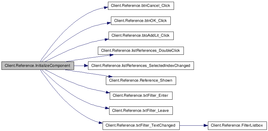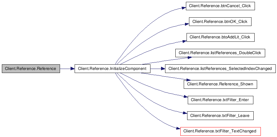 References Client.Reference.btnCancel, Client.Reference.btnCancel_Click(), Client.Reference.btnOK, Client.Reference.btnOK_Click(), Client.Reference.btoAddLit, Client.Reference.btoAddLit_Click(), Client.Reference.listReferences, Client.Reference.listReferences_DoubleClick(), Client.Reference.listReferences_SelectedIndexChanged(), Client.Reference.panel1, Client.Reference.Reference_Shown(), Client.Reference.txtFilter, Client.Reference.txtFilter_Enter(), Client.Reference.txtFilter_Leave(), and Client.Reference.txtFilter_TextChanged().